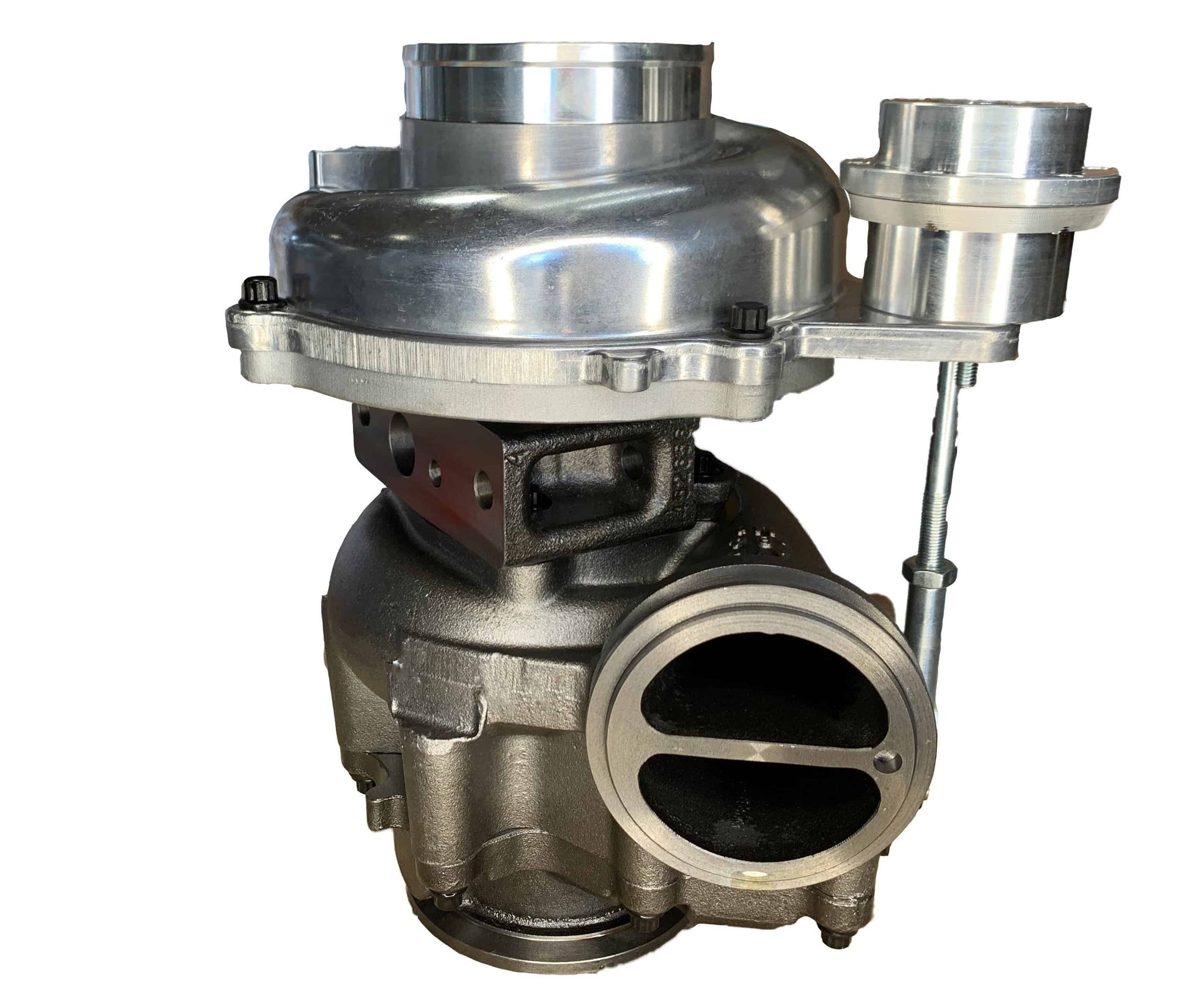 **EXHAUST BRAKES: We get asked a lot about exhaust brakes and if they work with our turbos. We have found that some brands have clearance issues and might cause the brake to hinder performance, rub the turbine wheel, or cause other issues. These brakes typically use some sort of flapper to close which causes extreme exhaust back pressure to aide in braking. This can be hard on a turbo and motor and is not recommended. It will be up to the customer to verify fitment and functionality.**